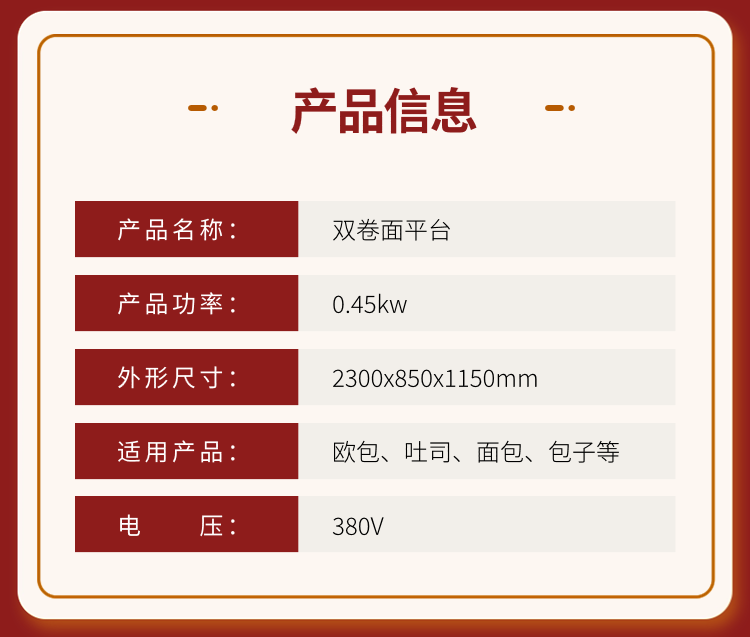 · ?雙卷面平臺是歐包、吐司、面包、包子生產(chǎn)線等增配產(chǎn)品。